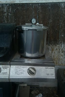 I started the pressure canning process on the electric stove. This was not something that I thought much about, but it would become an important point in a few minutes. I started the stove timer and went back to housework. Every once in awhile I checked to make sure that I was still at the right pressure - although I never seem to get the canner to back off to 10 pounds...I generally can at about 15 pounds all the time.